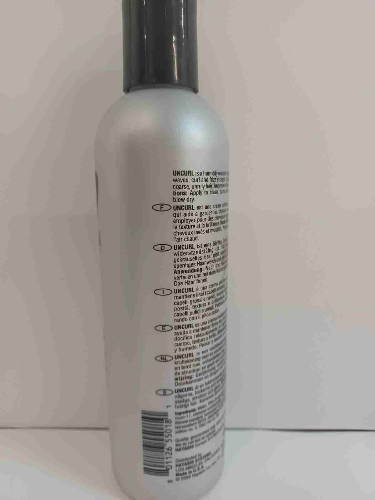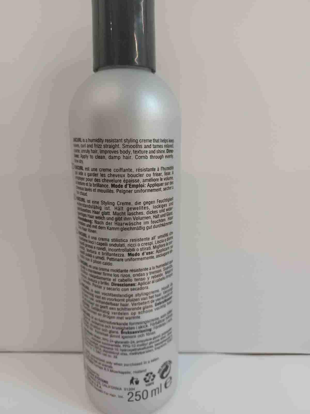 UNCURL is a humidity resistant styling creme that helps keep waves, curl, and frizz straight.