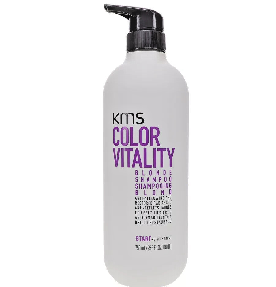 KMS Color Vitality Blonde Shampoo promises to cleanse, protect and restore luminosity from the root to tip.