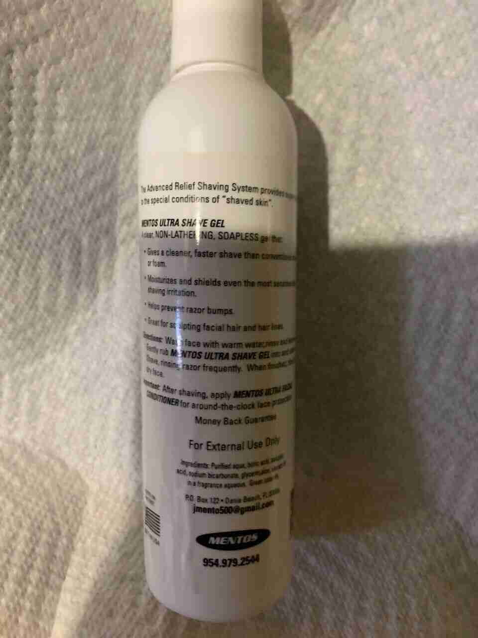 Mentos Ultra Shave Gel in a large size 7oz bottle (not pump). Mentos Shave Gel is a unique Ph balanced, non-lathering shave formula that gives a clean, fast shave you cannot get from conventional soap based products. Alcohol and soap free. Keeps sensitive skin healthy and helps prevent razor bumps when used with Mentos Shave.